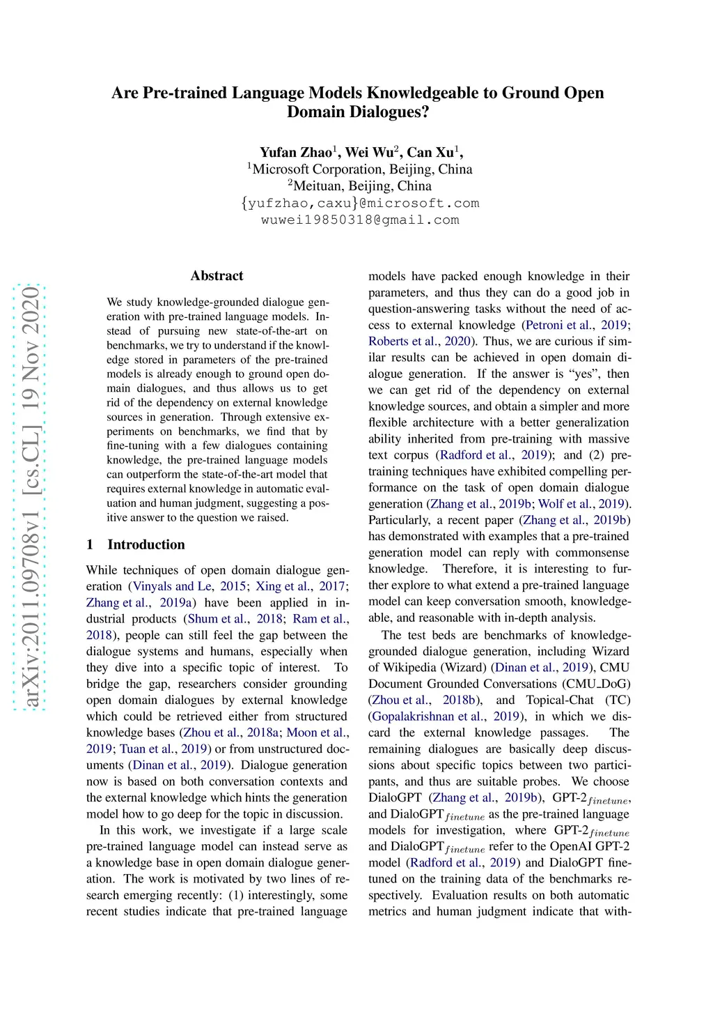 We study knowledge-grounded dialogue generation with pre-trained language models. Instead of pursuing new state-of-the-art on benchmarks, we try to understand if the knowledge stored in parameters of the pre-trained models is already enough to ground open domain dialogues, and thus allows us to get rid of the dependency on external knowledge sources in generation. Through extensive experiments on benchmarks, we find that by fine-tuning with a few dialogues containing knowledge, the pre-trained language models can outperform the state-of-the-art model that requires external knowledge in automatic evaluation and human judgment, suggesting a positive answer to the question we raised.