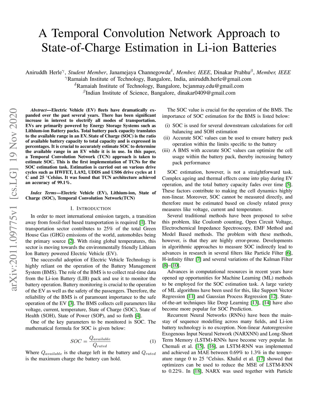 A Temporal Convolution Network Approach to State-of-Charge Estimation in