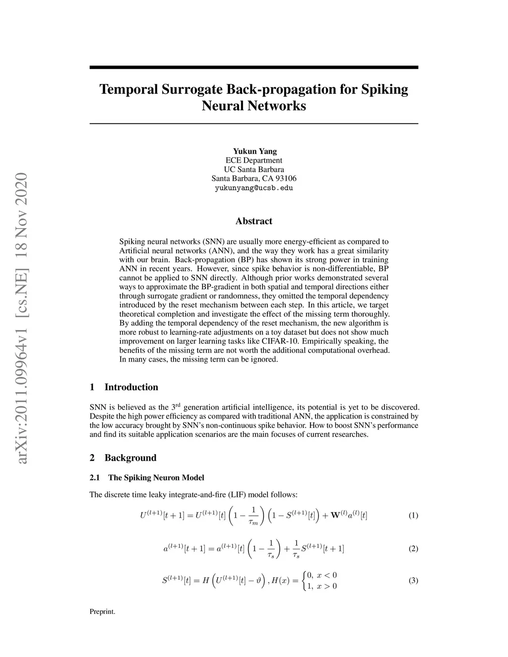 Temporal Surrogate Back-propagation for Spiking Neural Networks