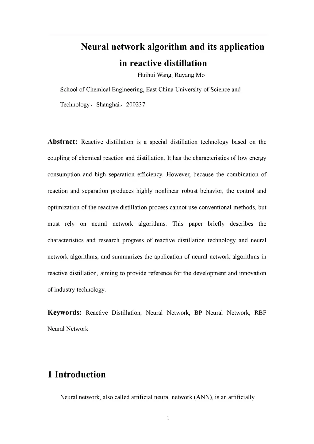 Reactive distillation is a special distillation technology based on the coupling of chemical reaction and distillation. It has the characteristics of low energy consumption and high separation efficiency. However, because the combination of reaction and separation produces highly nonlinear robust behavior, the control and optimization of the reactive distillation process cannot use conventional methods, but must rely on neural network algorithms. This paper briefly describes the characteristics and research progress of reactive distillation technology and neural network algorithms, and summarizes the application of neural network algorithms in reactive distillation, aiming to provide reference for the development and innovation of industry technology.