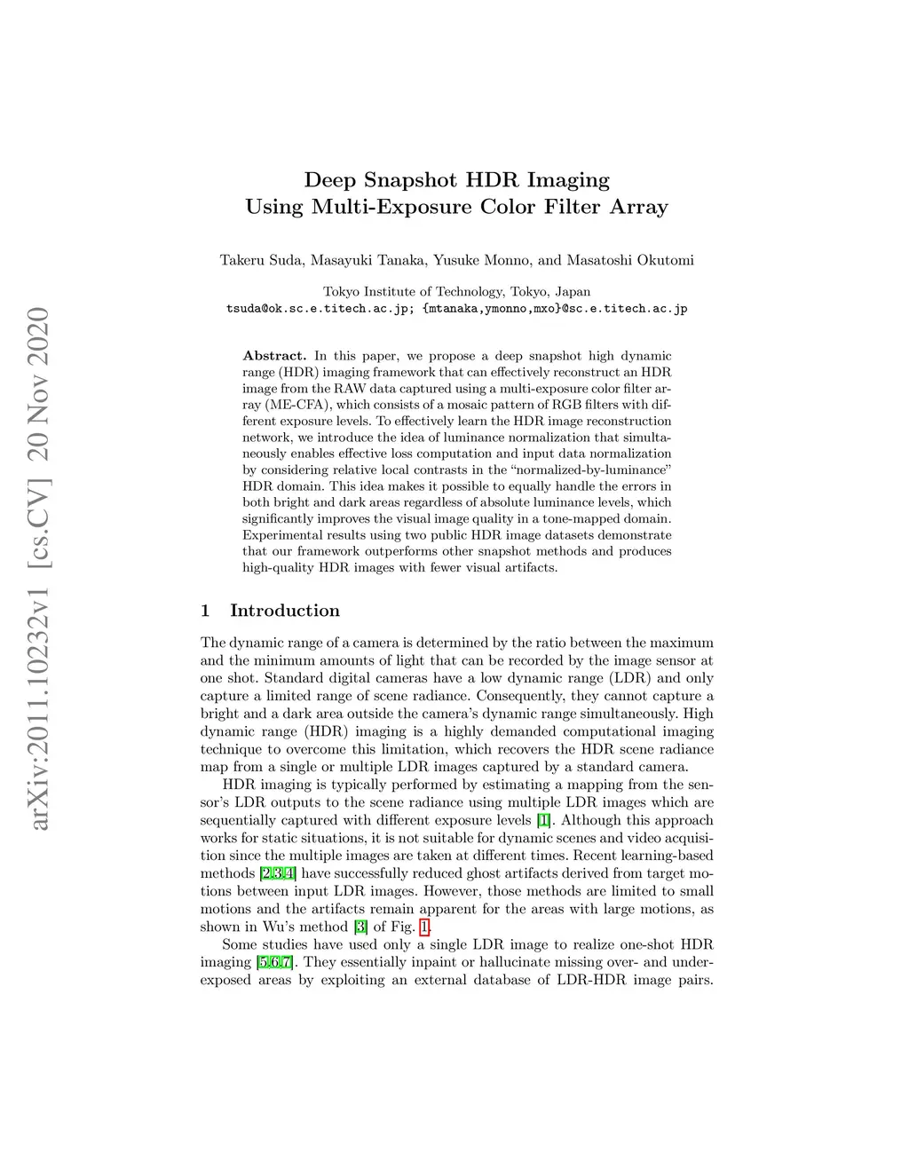 Deep Snapshot HDR Imaging Using Multi-Exposure Color Filter Array