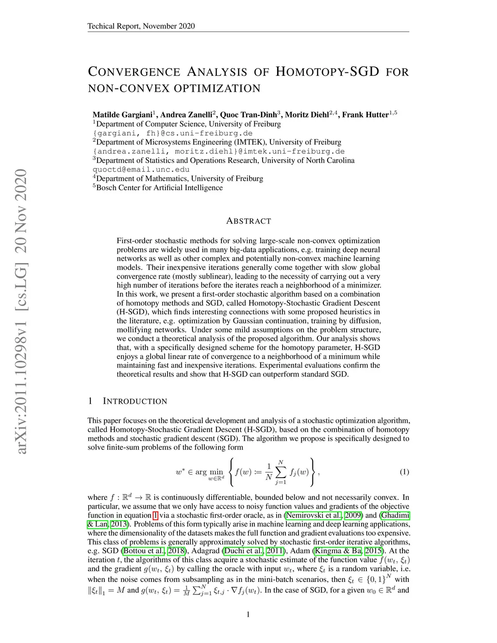Convergence Analysis of Homotopy-SGD for non-convex optimization
