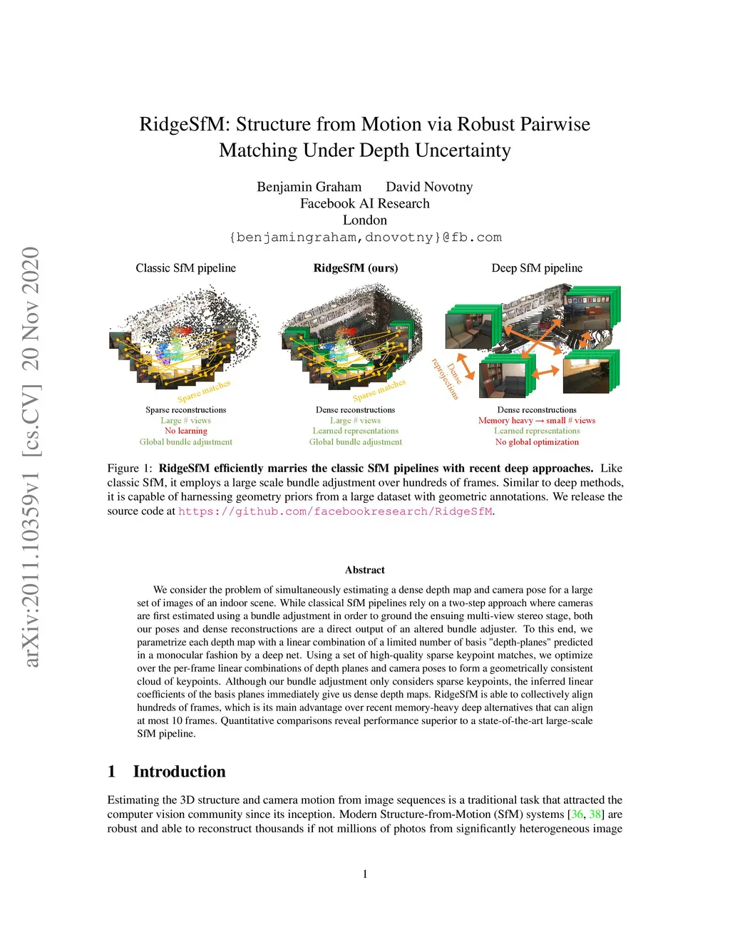 RidgeSfM: Structure from Motion via Robust Pairwise Matching Under Depth