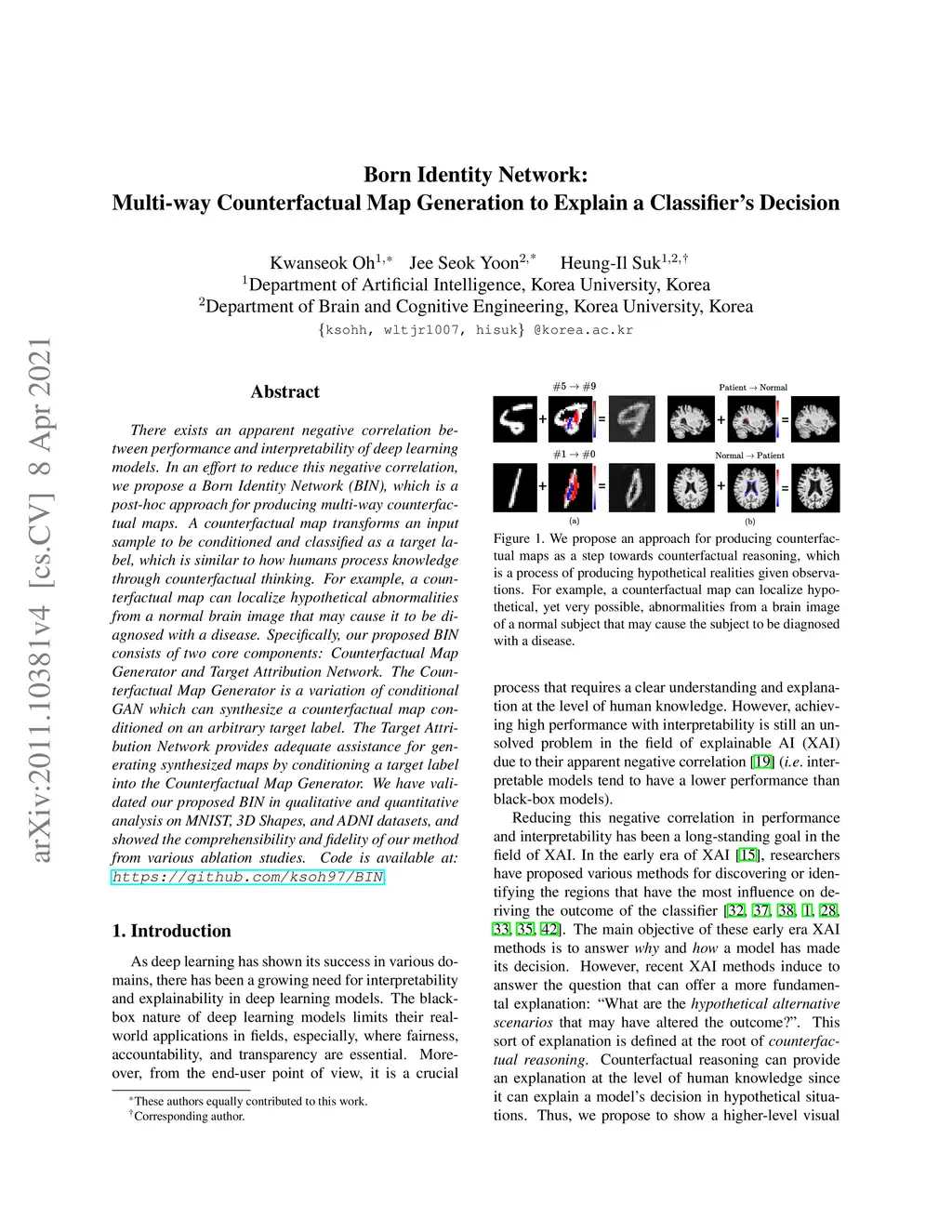 Born Identity Network: Multi-way Counterfactual Map Generation to