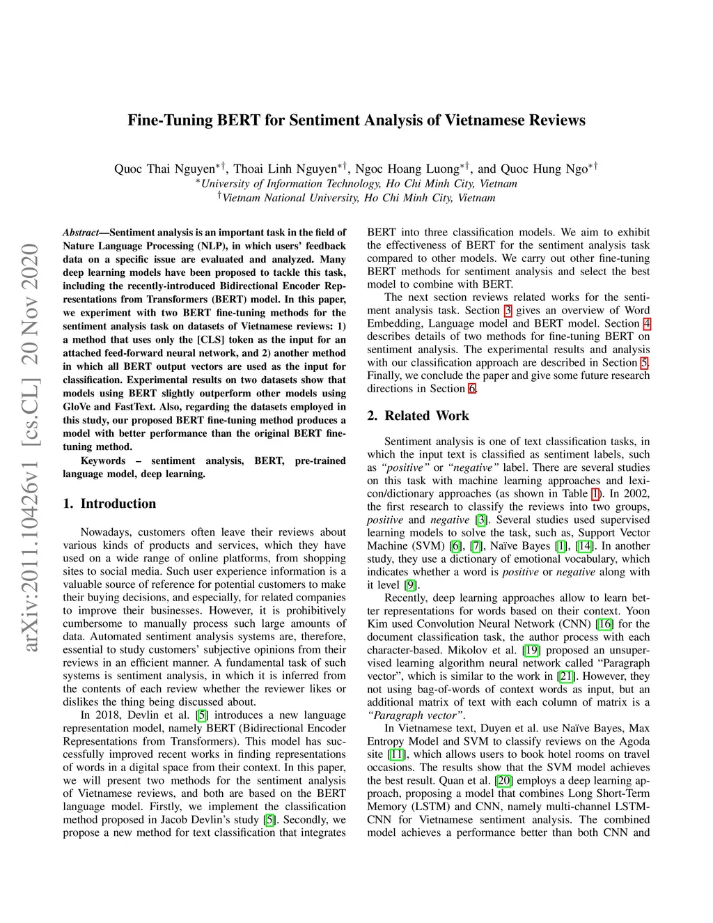 Fine-Tuning BERT for Sentiment Analysis of Vietnamese Reviews