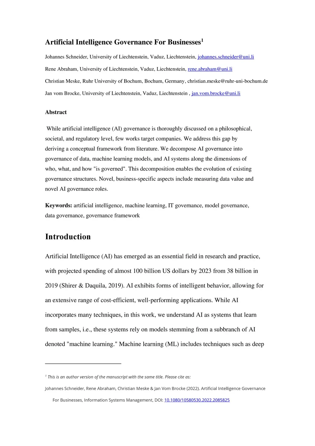 Artificial Intelligence Governance for Businesses
