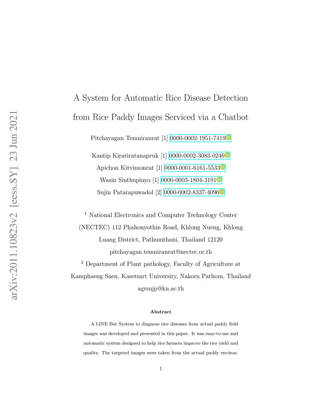 A System for Automatic Rice Disease Detection from Rice Paddy Images