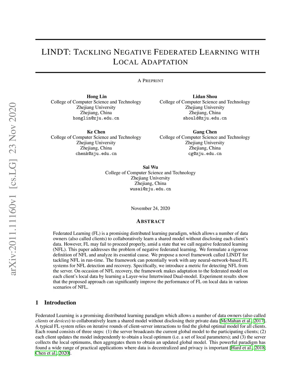 Federated Learning (FL) is a promising distributed learning paradigm, which allows a number of data owners (also called clients) to collaboratively learn a shared model without disclosing each client's data. However, FL may fail to proceed properly, amid a state that we call negative federated learning (NFL). This paper addresses the problem of negative federated learning. We formulate a rigorous definition of NFL and analyze its essential cause. We propose a novel framework called LINDT for tackling NFL in run-time. The framework can potentially work with any neural-network-based FL systems for NFL detection and recovery. Specifically, we introduce a metric for detecting NFL from the server. On occasion of NFL recovery, the framework makes adaptation to the federated model on each client's local data by learning a Layer-wise Intertwined Dual-model. Experiment results show that the proposed approach can significantly improve the performance of FL on local data in various scenarios of NFL.