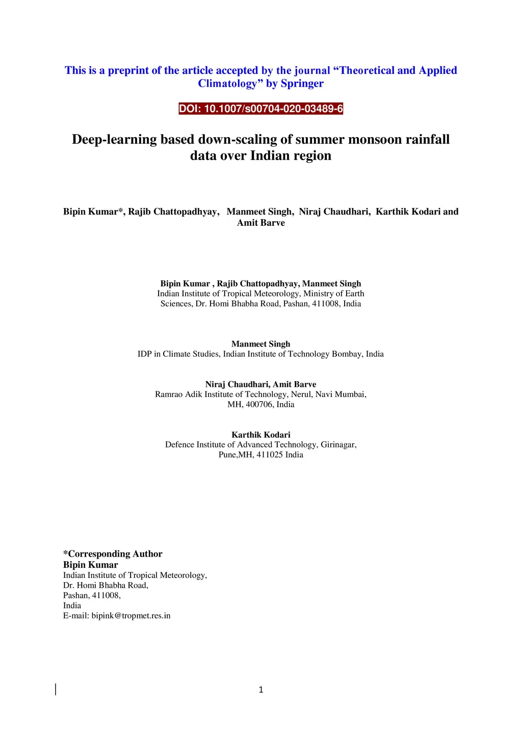 Deep-learning based down-scaling of summer monsoon rainfall data over