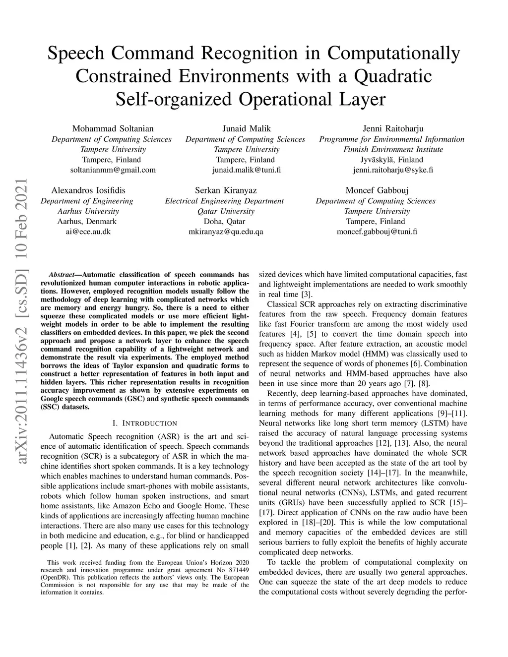 Speech Command Recognition in Computationally Constrained Environments