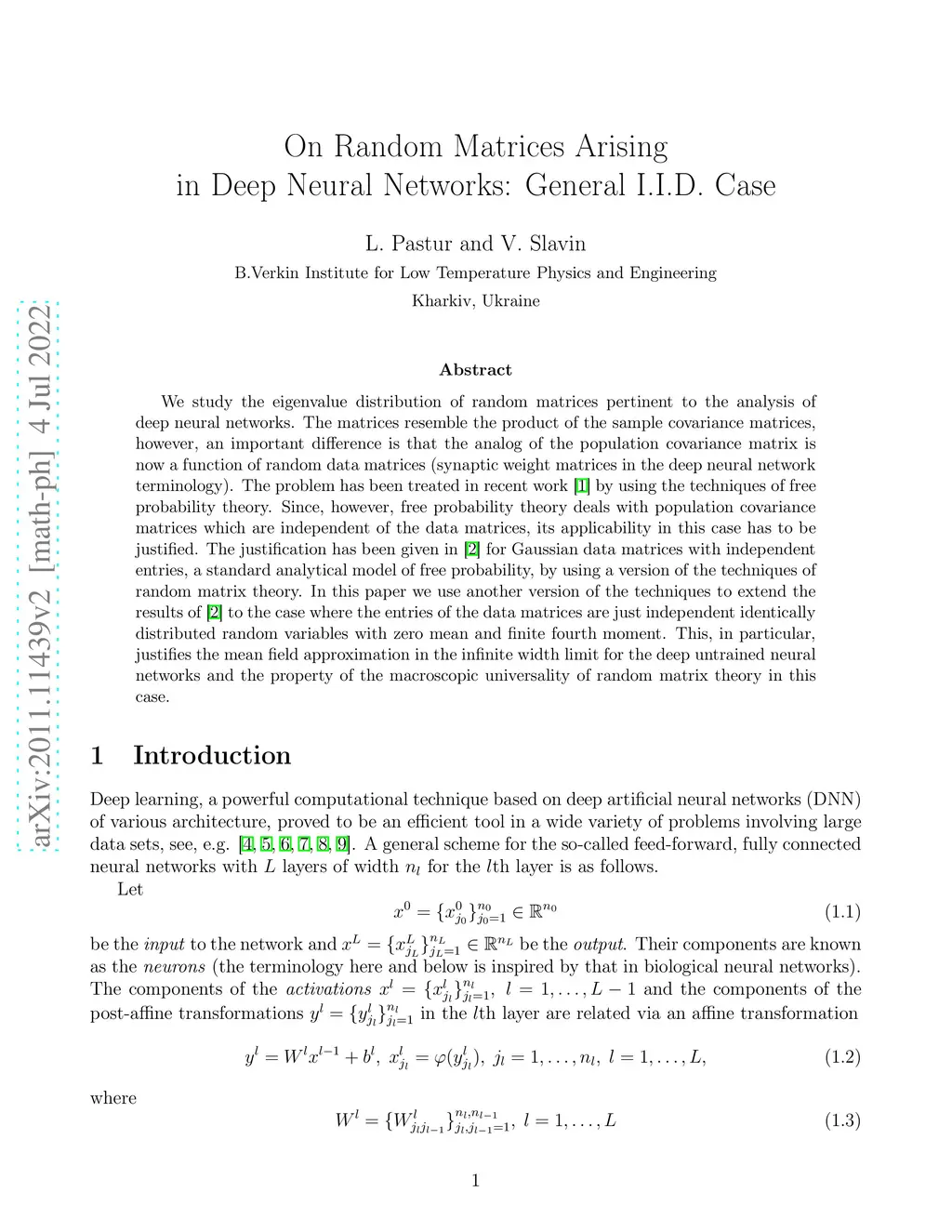On Random Matrices Arising in Deep Neural Networks: General I.I.D. Case
