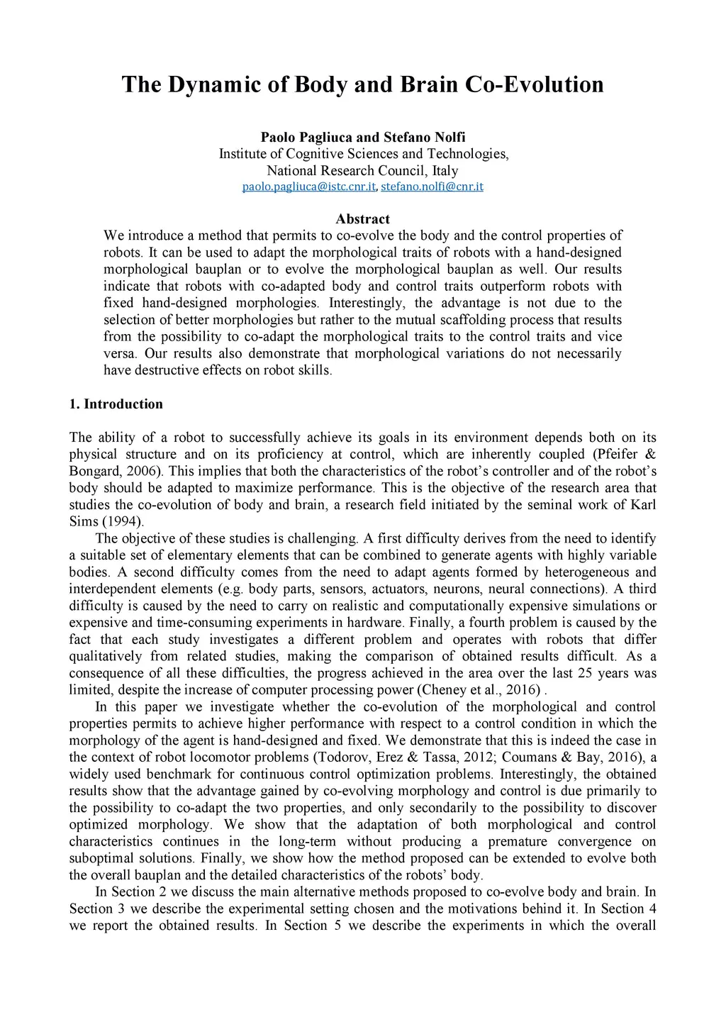 The Dynamic of Body and Brain Co-Evolution