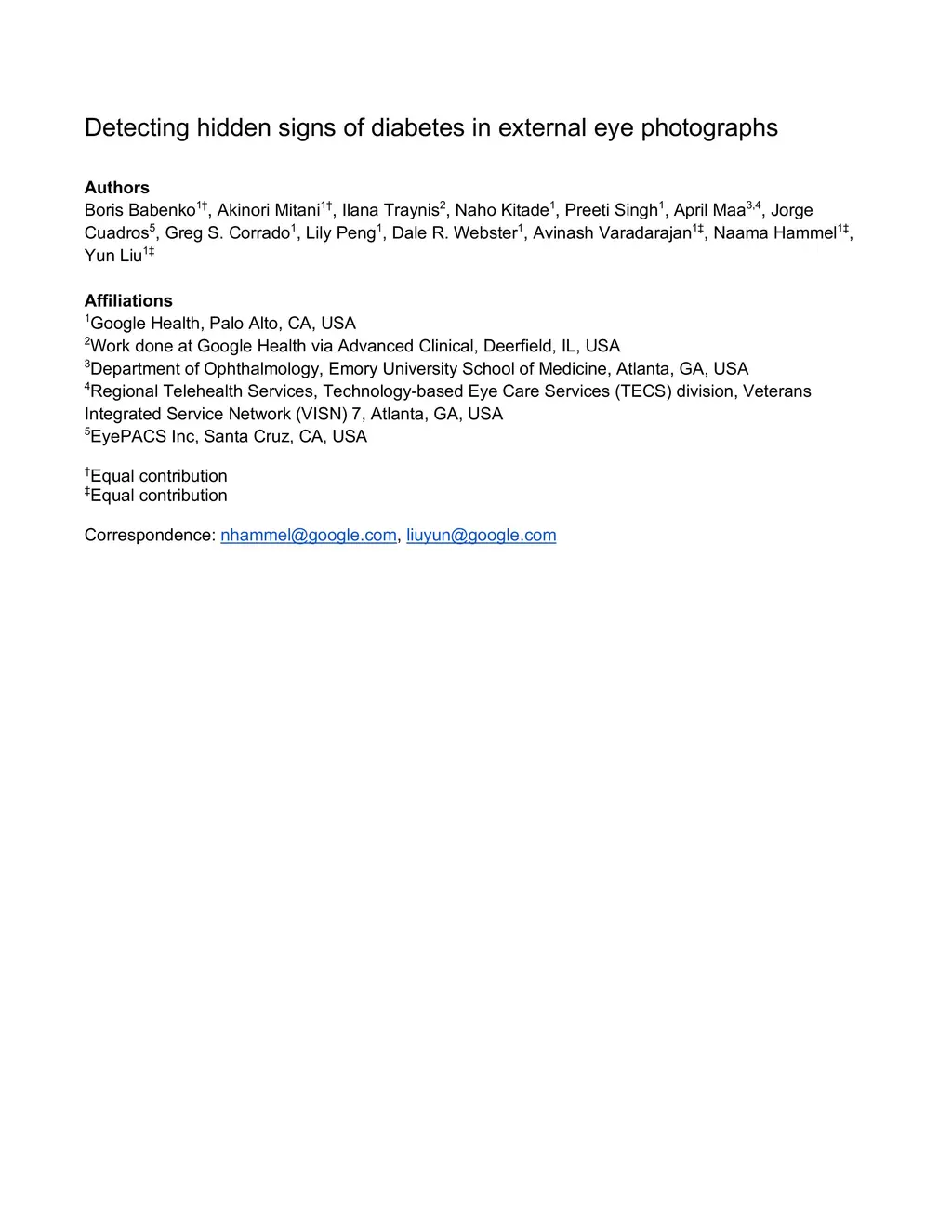 Detecting hidden signs of diabetes in external eye photographs