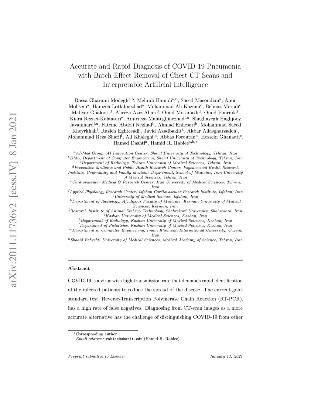 Accurate and Rapid Diagnosis of COVID-19 Pneumonia with Batch Effect
