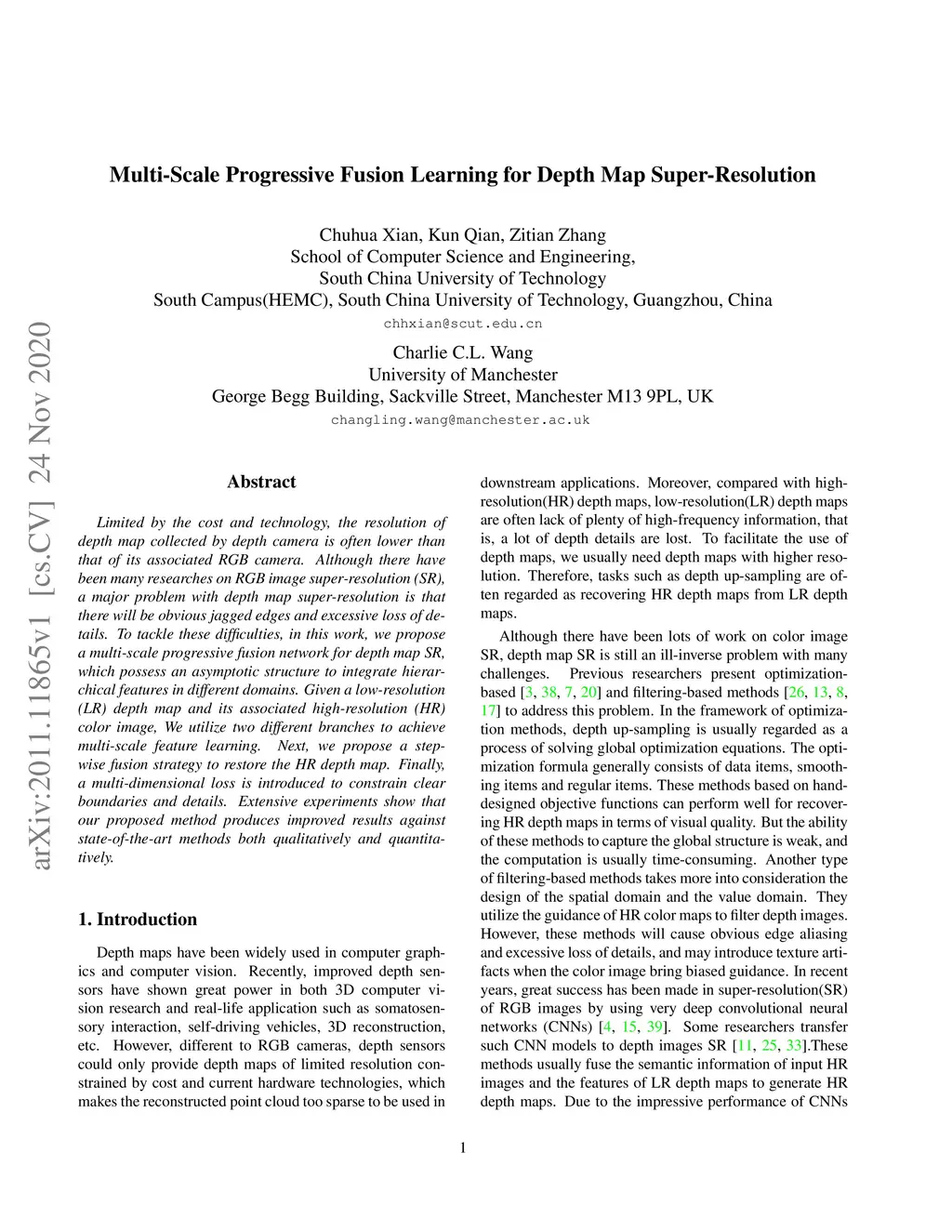 Multi-Scale Progressive Fusion Learning for Depth Map Super-Resolution