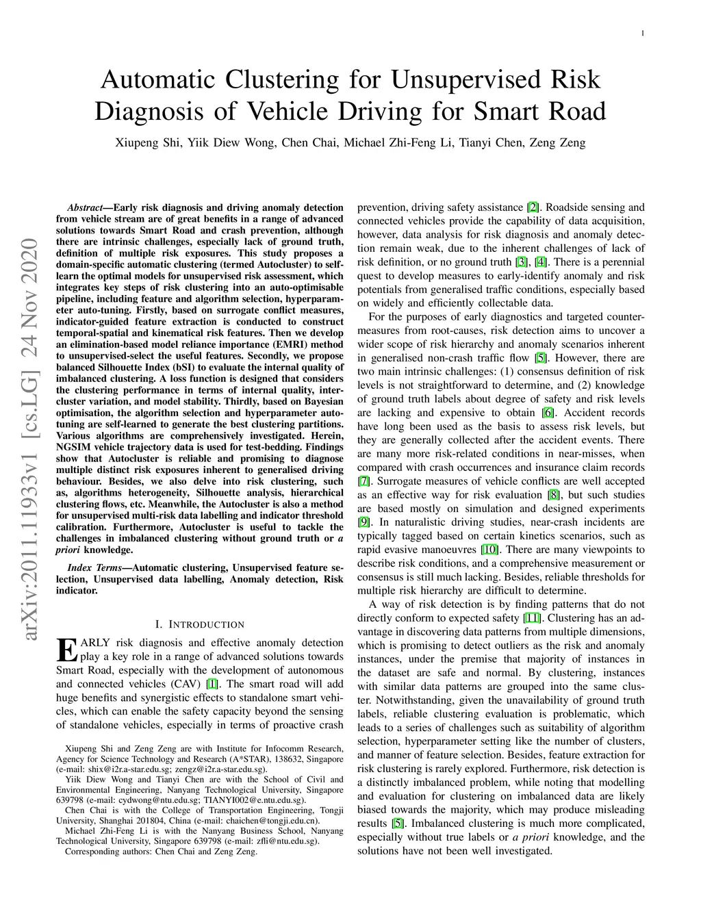 Automatic Clustering for Unsupervised Risk Diagnosis of Vehicle Driving