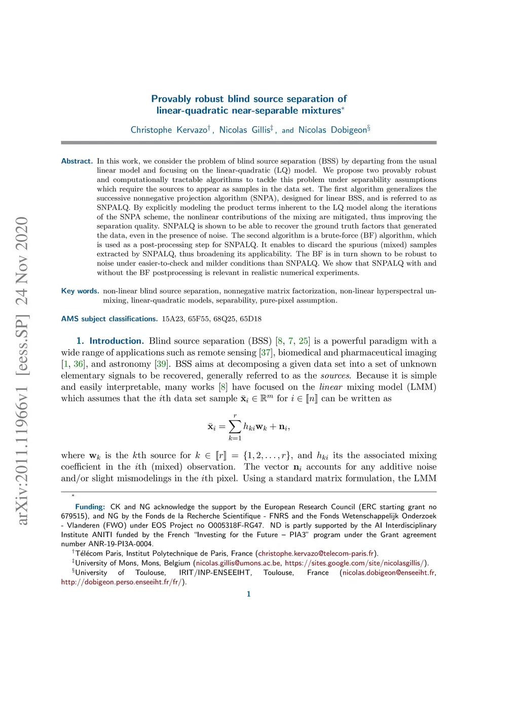 Provably robust blind source separation of linear-quadratic