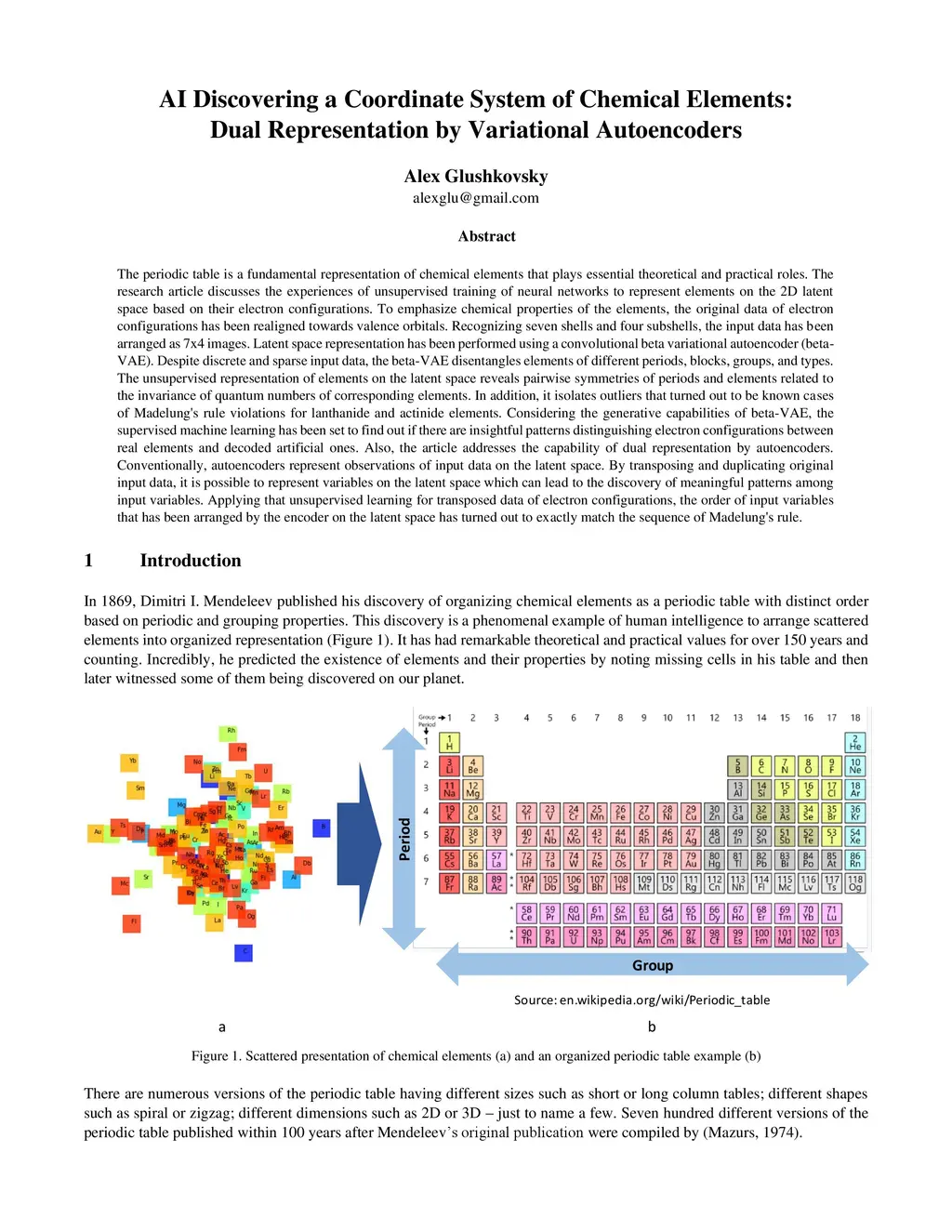 AI Discovering a Coordinate System of Chemical Elements: Dual Representation by Variational Autoencoders