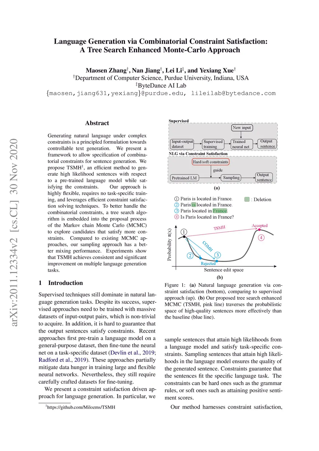 Language Generation via Combinatorial Constraint Satisfaction: A Tree