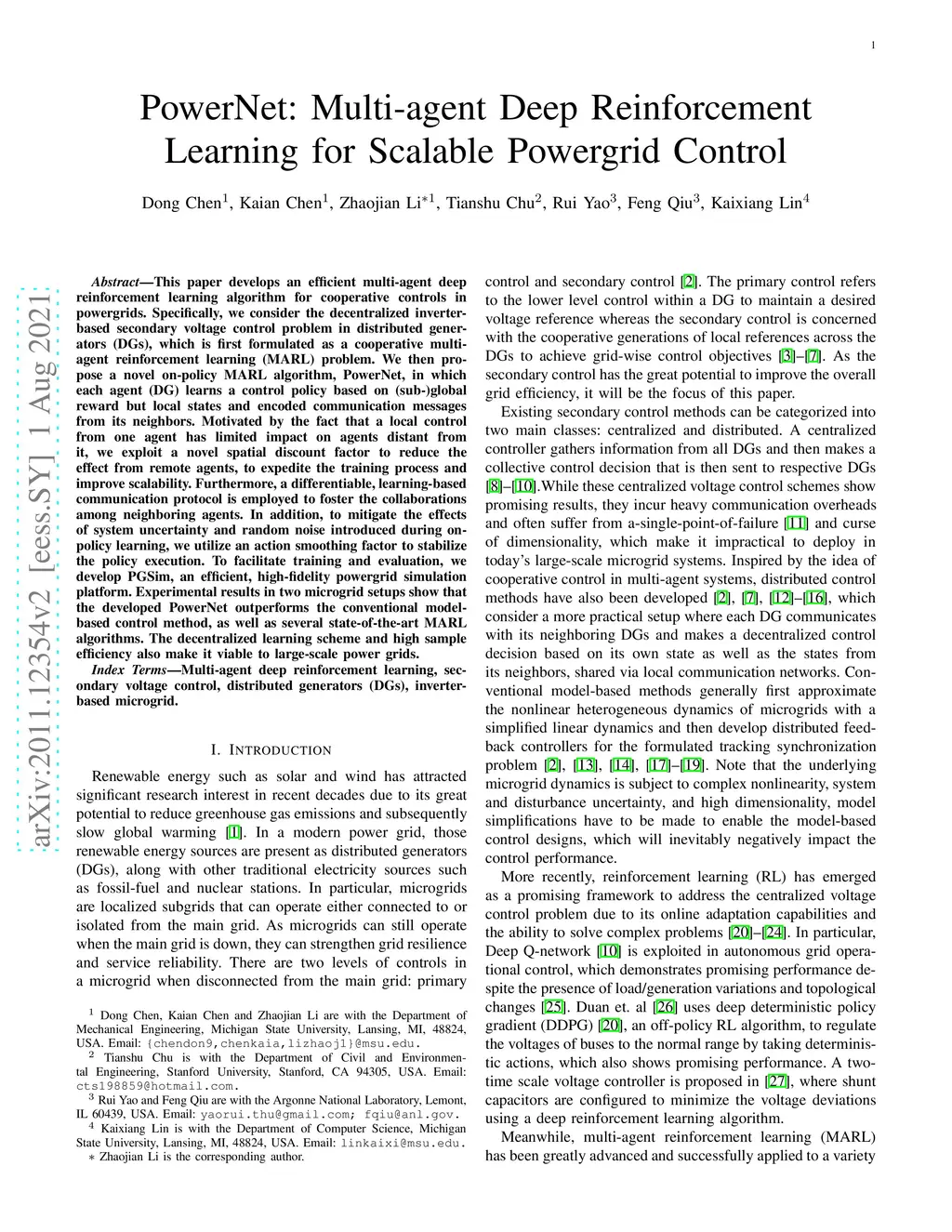PowerNet: Multi-agent Deep Reinforcement Learning for Scalable Powergrid