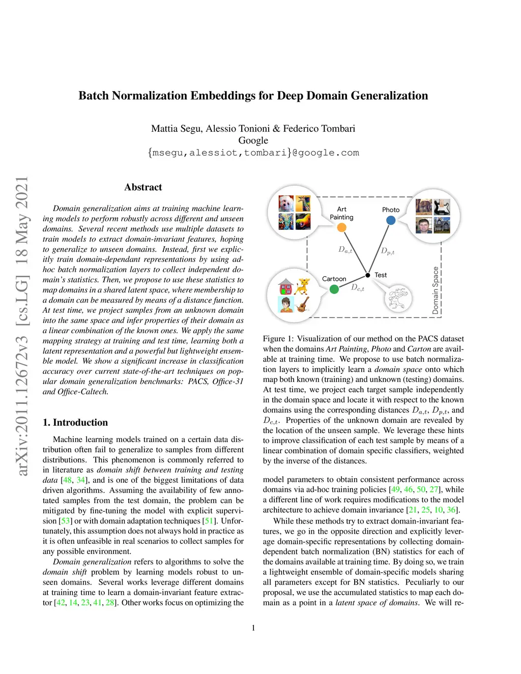 Domain generalization aims at training machine learning models to perform robustly across different and unseen domains. Several recent methods use multiple datasets to train models to extract domain-invariant features, hoping to generalize to unseen domains. Instead, first we explicitly train domain-dependant representations by using ad-hoc batch normalization layers to collect independent domain's statistics. Then, we propose to use these statistics to map domains in a shared latent space, where membership to a domain can be measured by means of a distance function. At test time, we project samples from an unknown domain into the same space and infer properties of their domain as a linear combination of the known ones. We apply the same mapping strategy at training and test time, learning both a latent representation and a powerful but lightweight ensemble model. We show a significant increase in classification accuracy over current state-of-the-art techniques on popular domain generalization benchmarks: PACS, Office-31 and Office-Caltech.