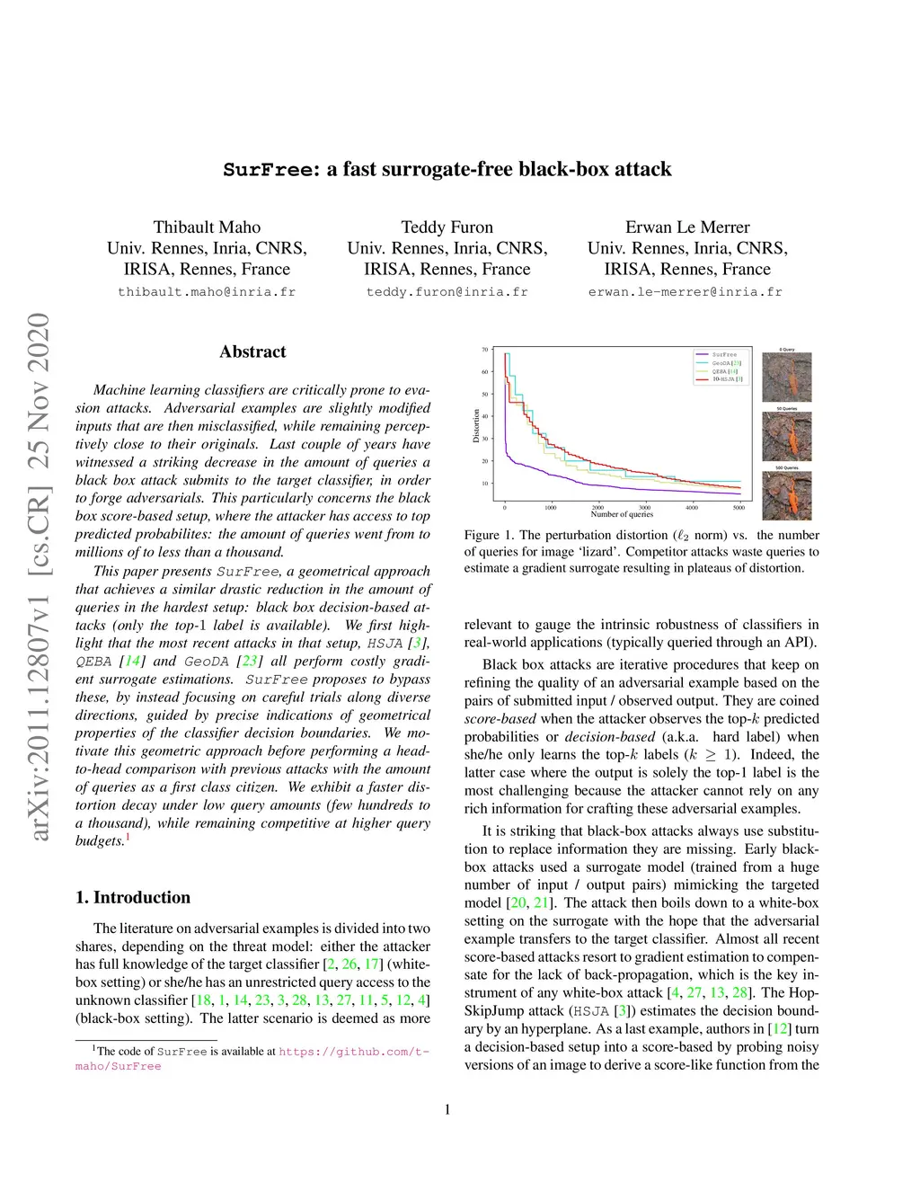 SurFree: a fast surrogate-free black-box attack