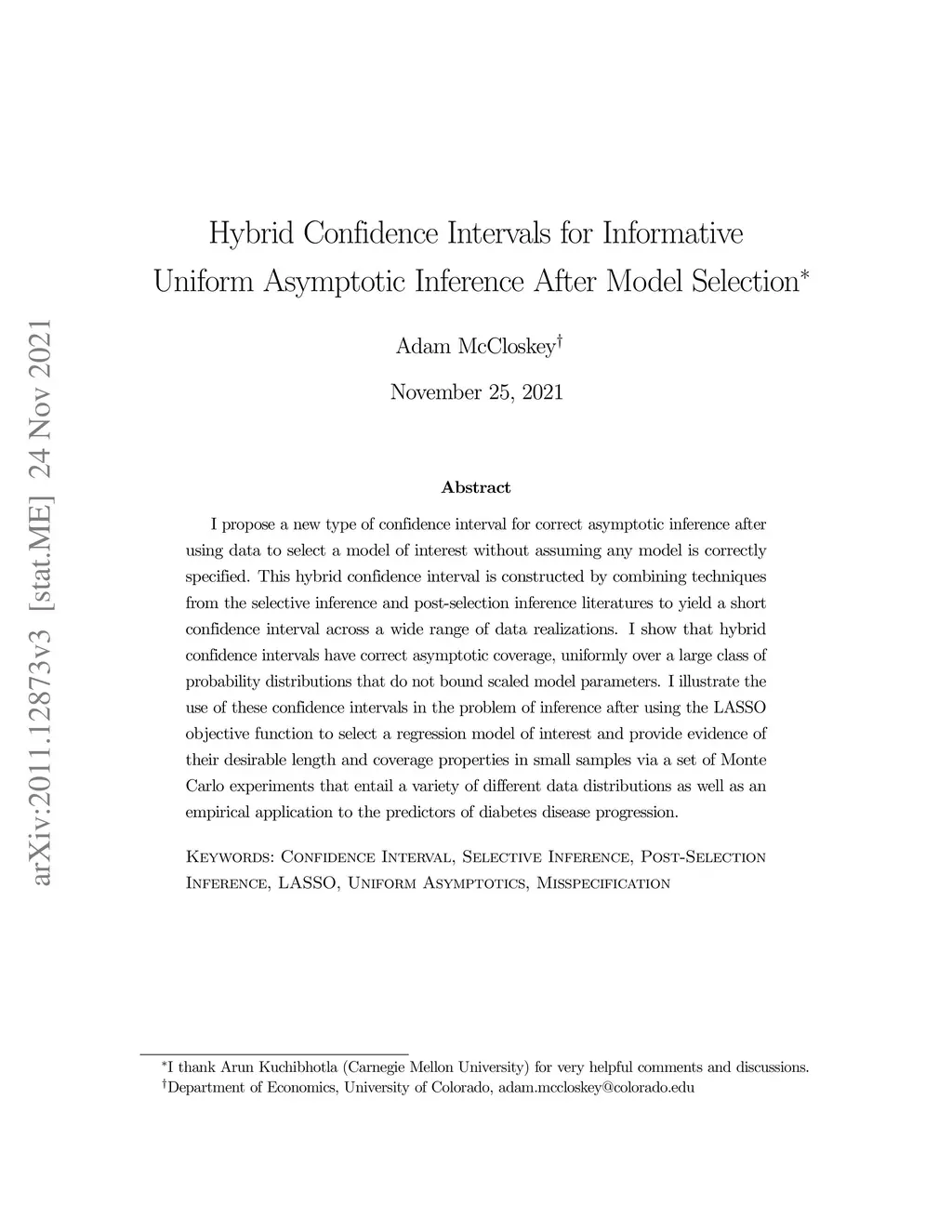 I propose a new type of confidence interval for correct asymptotic inference after using data to select a model of interest without assuming any model is correctly specified. This hybrid confidence interval is constructed by combining techniques from the selective inference and post-selection inference literatures to yield a short confidence interval across a wide range of data realizations. I show that hybrid confidence intervals have correct asymptotic coverage, uniformly over a large class of probability distributions that do not bound scaled model parameters. I illustrate the use of these confidence intervals in the problem of inference after using the LASSO objective function to select a regression model of interest and provide evidence of their desirable length and coverage properties in small samples via a set of Monte Carlo experiments that entail a variety of different data distributions as well as an empirical application to the predictors of diabetes disease progression.