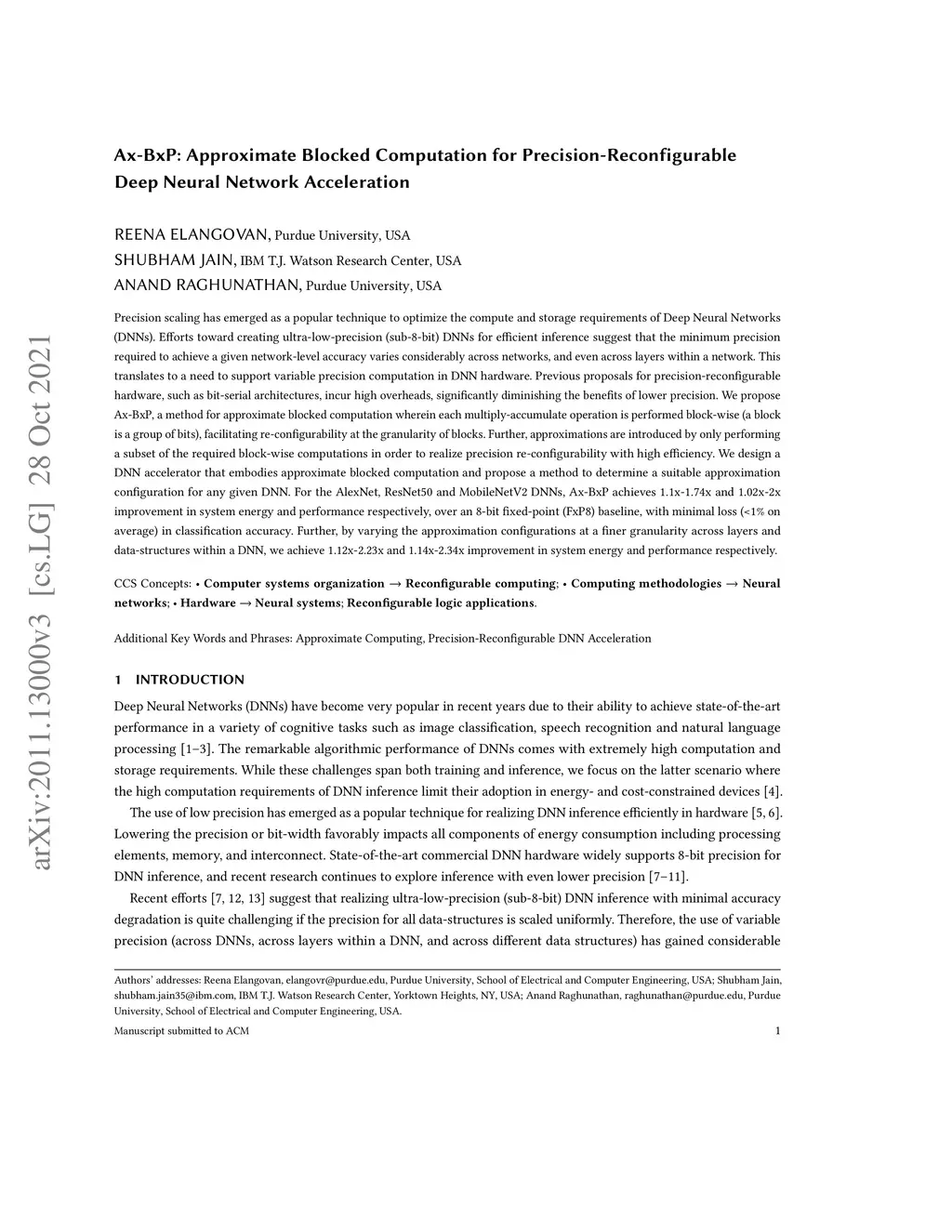 Ax-BxP: Approximate Blocked Computation for Precision-Reconfigurable