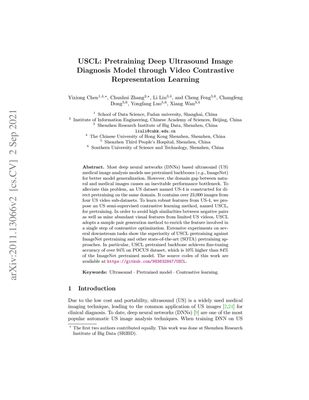 USCL: Pretraining Deep Ultrasound Image Diagnosis Model through Video