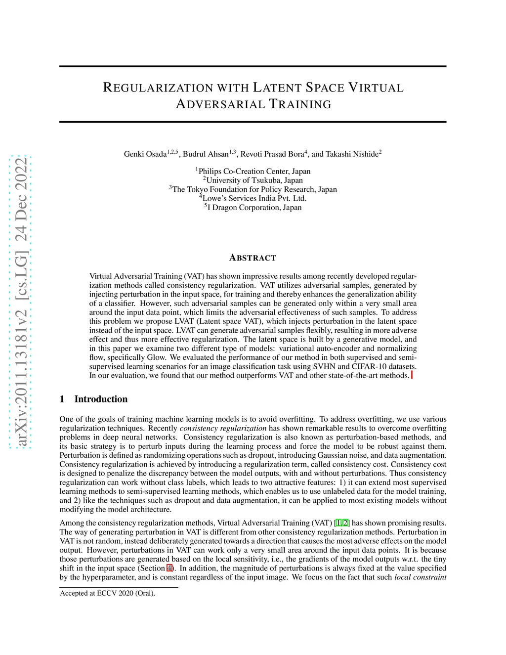 Regularization with Latent Space Virtual Adversarial Training