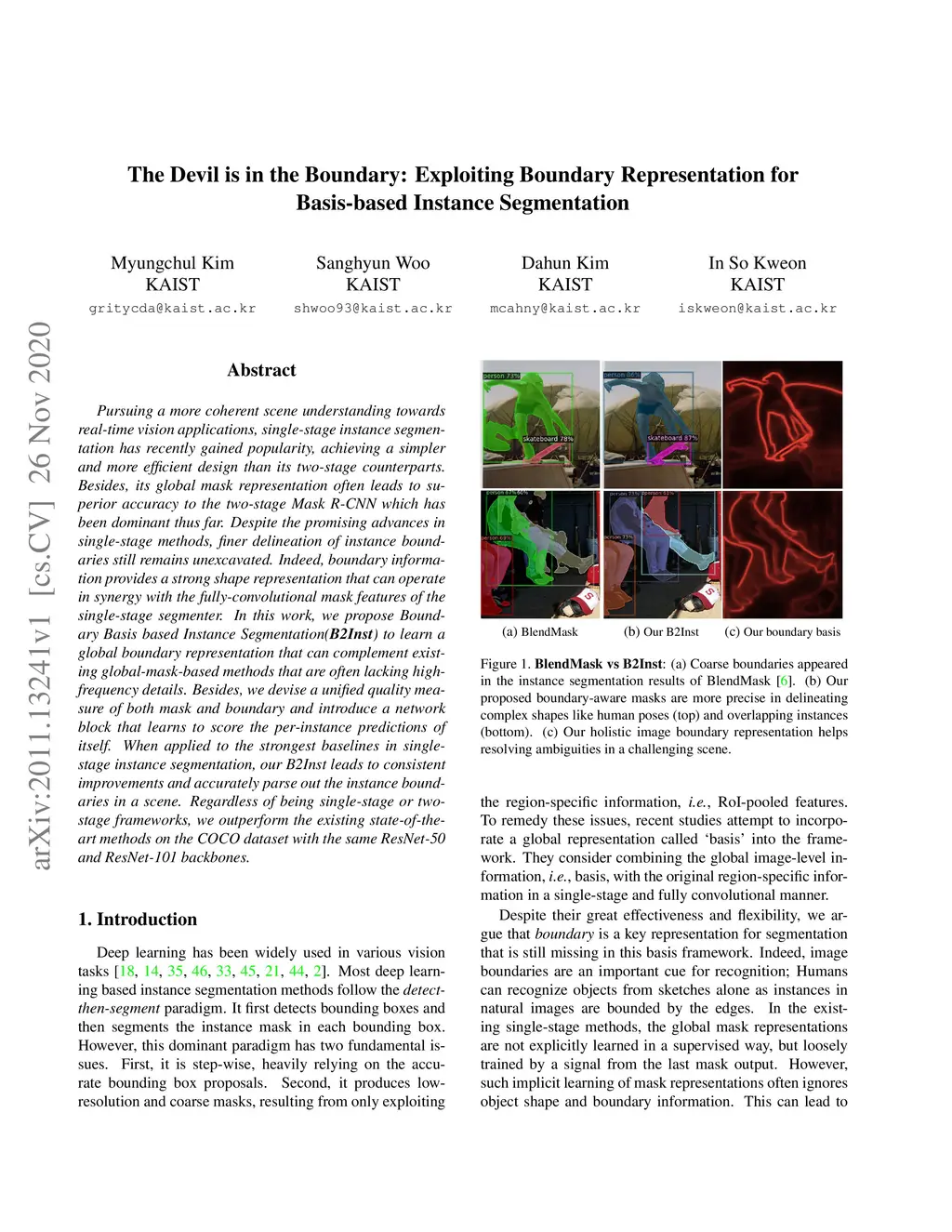 Pursuing a more coherent scene understanding towards real-time vision applications, single-stage instance segmentation has recently gained popularity, achieving a simpler and more efficient design than its two-stage counterparts. Besides, its global mask representation often leads to superior accuracy to the two-stage Mask R-CNN which has been dominant thus far. Despite the promising advances in single-stage methods, finer delineation of instance boundaries still remains unexcavated. Indeed, boundary information provides a strong shape representation that can operate in synergy with the fully-convolutional mask features of the single-stage segmenter. In this work, we propose Boundary Basis based Instance Segmentation(B2Inst) to learn a global boundary representation that can complement existing global-mask-based methods that are often lacking high-frequency details. Besides, we devise a unified quality measure of both mask and boundary and introduce a network block that learns to score the per-instance predictions of itself. When applied to the strongest baselines in single-stage instance segmentation, our B2Inst leads to consistent improvements and accurately parse out the instance boundaries in a scene. Regardless of being single-stage or two-stage frameworks, we outperform the existing state-of-the-art methods on the COCO dataset with the same ResNet-50 and ResNet-101 backbones.