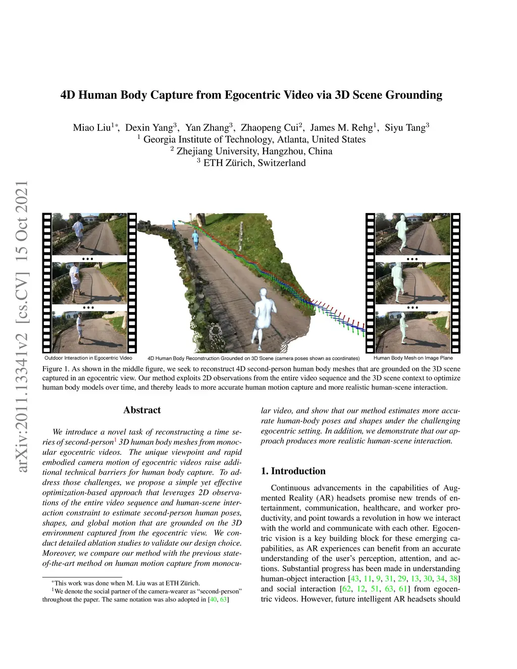 We introduce a novel task of reconstructing a time series of second-person 3D human body meshes from monocular egocentric videos. The unique viewpoint and rapid embodied camera motion of egocentric videos raise additional technical barriers for human body capture. To address those challenges, we propose a simple yet effective optimization-based approach that leverages 2D observations of the entire video sequence and human-scene interaction constraint to estimate second-person human poses, shapes, and global motion that are grounded on the 3D environment captured from the egocentric view. We conduct detailed ablation studies to validate our design choice. Moreover, we compare our method with the previous state-of-the-art method on human motion capture from monocular video, and show that our method estimates more accurate human-body poses and shapes under the challenging egocentric setting. In addition, we demonstrate that our approach produces more realistic human-scene interaction.