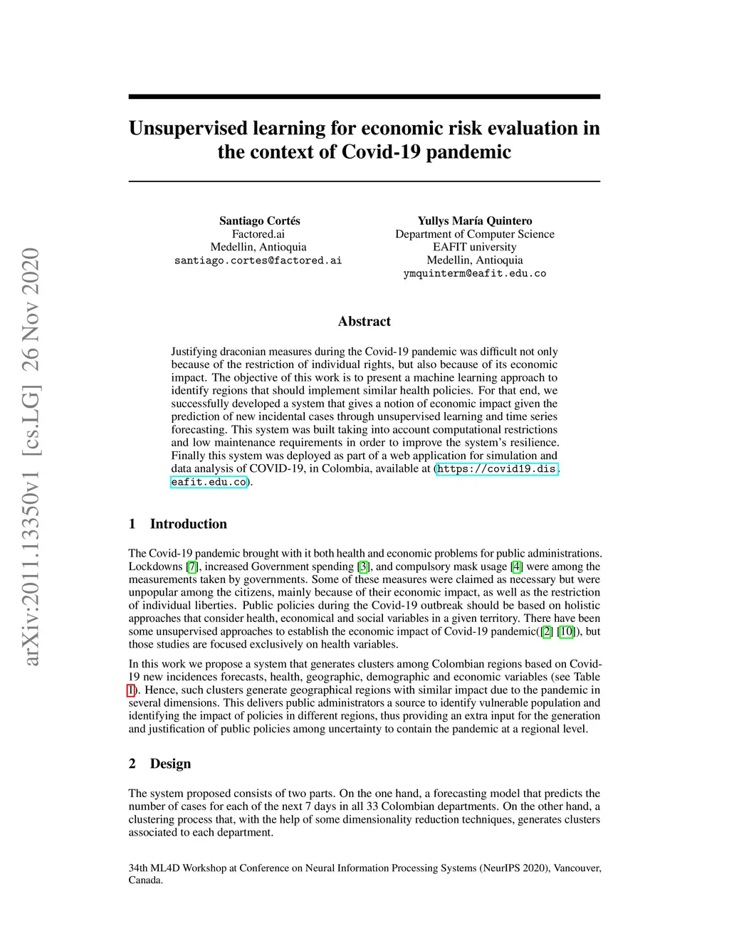 Justifying draconian measures during the Covid-19 pandemic was difficult not only because of the restriction of individual rights, but also because of its economic impact. The objective of this work is to present a machine learning approach to identify regions that should implement similar health policies. For that end, we successfully developed a system that gives a notion of economic impact given the prediction of new incidental cases through unsupervised learning and time series forecasting. This system was built taking into account computational restrictions and low maintenance requirements in order to improve the system's resilience. Finally this system was deployed as part of a web application for simulation and data analysis of COVID-19, in Colombia, available at (https://covid19.dis.eafit.edu.co).