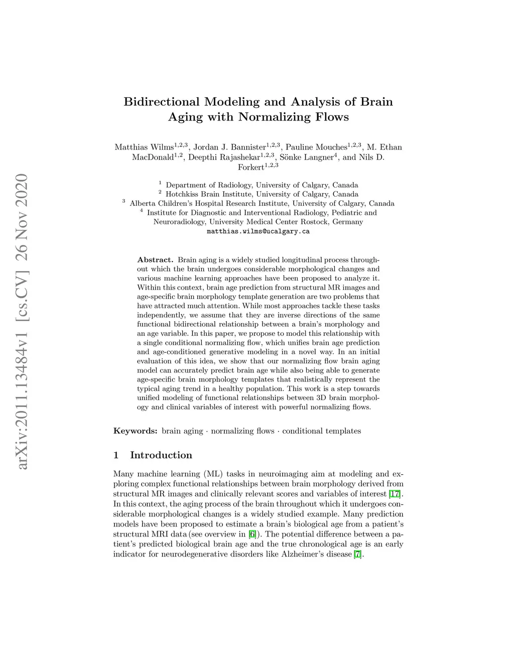 Bidirectional Modeling and Analysis of Brain Aging with Normalizing
