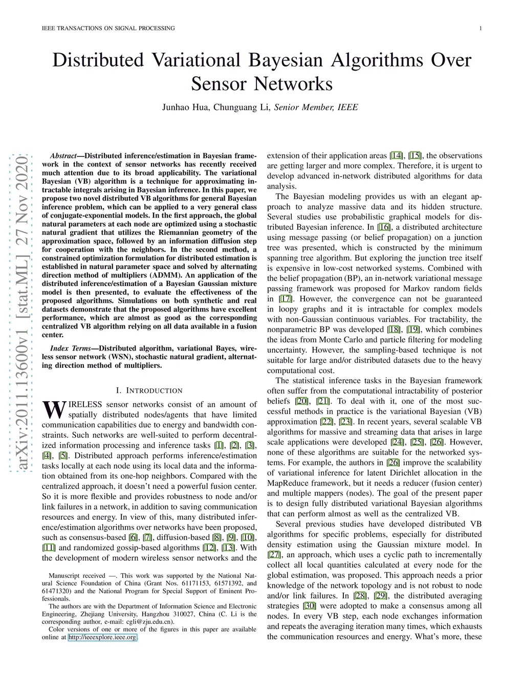 Distributed Variational Bayesian Algorithms Over Sensor Networks
