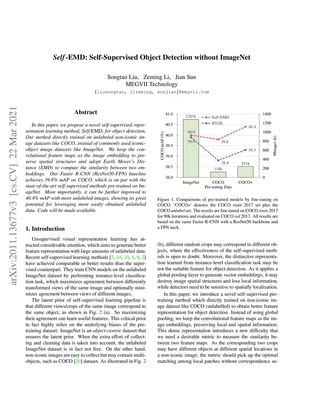 Self-EMD: Self-Supervised Object Detection without ImageNet