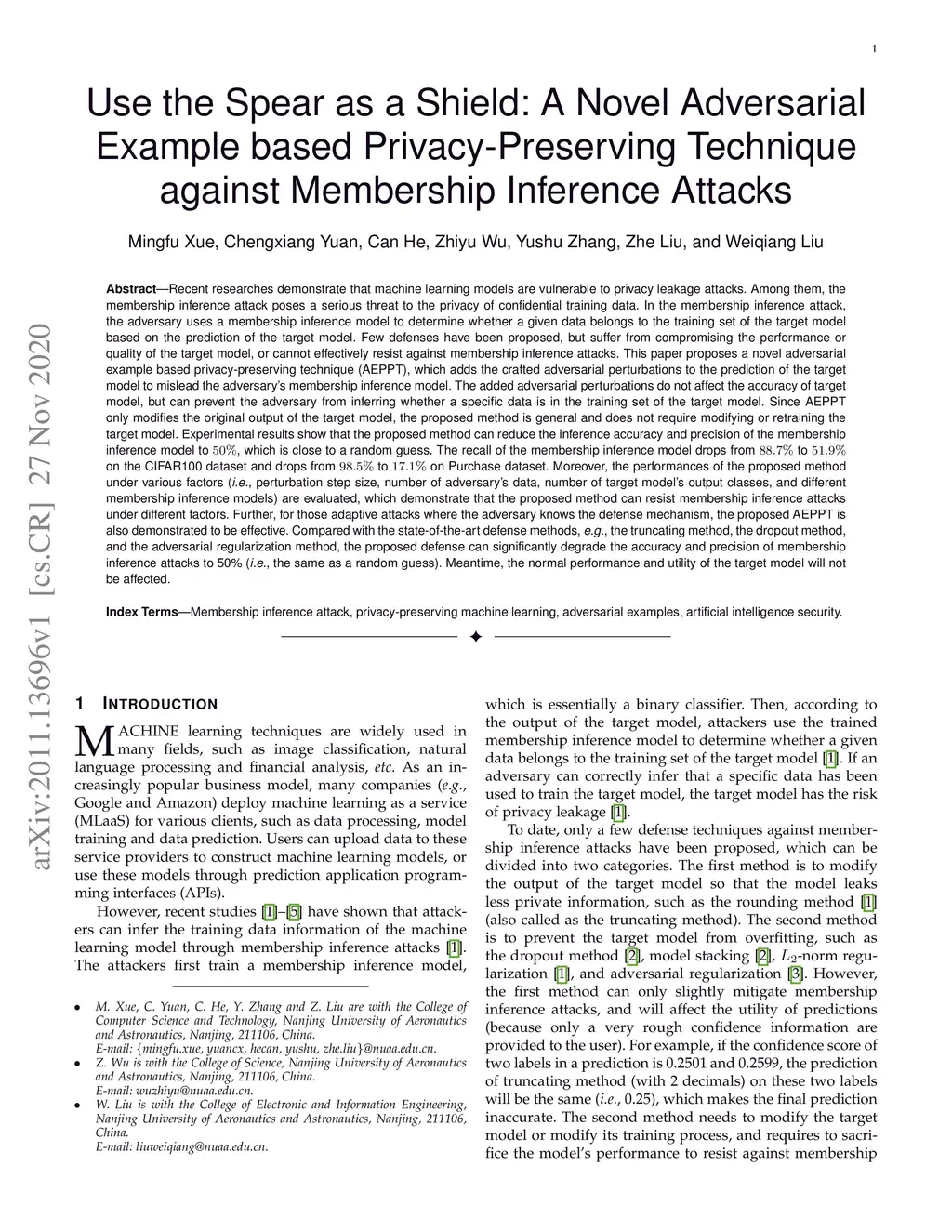 Privacy-Preserving Technique against Membership Inference Attacks