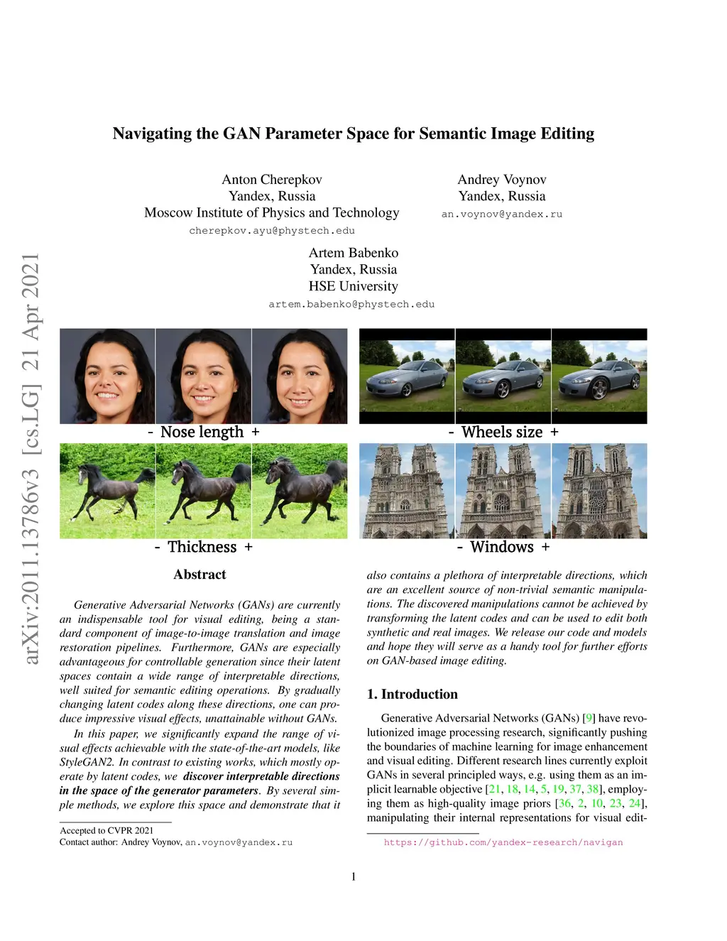 Navigating the GAN Parameter Space for Semantic Image Editing