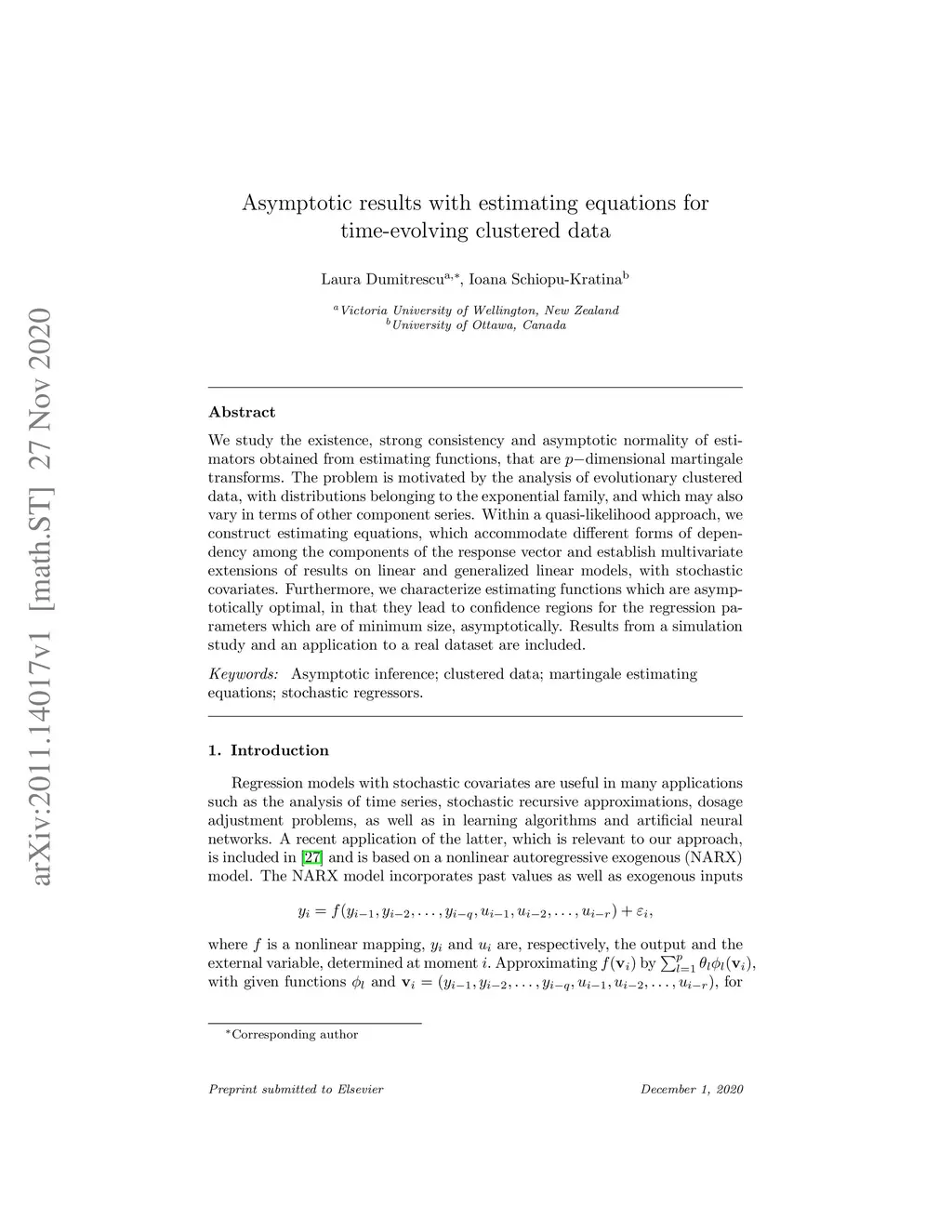 We study the existence, strong consistency and asymptotic normality of estimators obtained from estimating functions, that are p-dimensional martingale transforms. The problem is motivated by the analysis of evolutionary clustered data, with distributions belonging to the exponential family, and which may also vary in terms of other component series. Within a quasi-likelihood approach, we construct estimating equations, which accommodate different forms of dependency among the components of the response vector and establish multivariate extensions of results on linear and generalized linear models, with stochastic covariates. Furthermore, we characterize estimating functions which are asymptotically optimal, in that they lead to confidence regions for the regression parameters which are of minimum size, asymptotically. Results from a simulation study and an application to a real dataset are included.