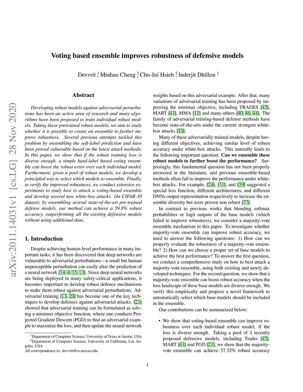 Voting based ensemble improves robustness of defensive models