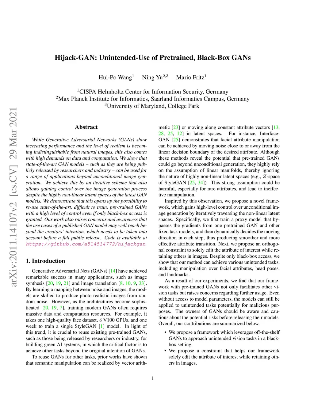 Hijack-GAN: Unintended-Use of Pretrained, Black-Box GANs
