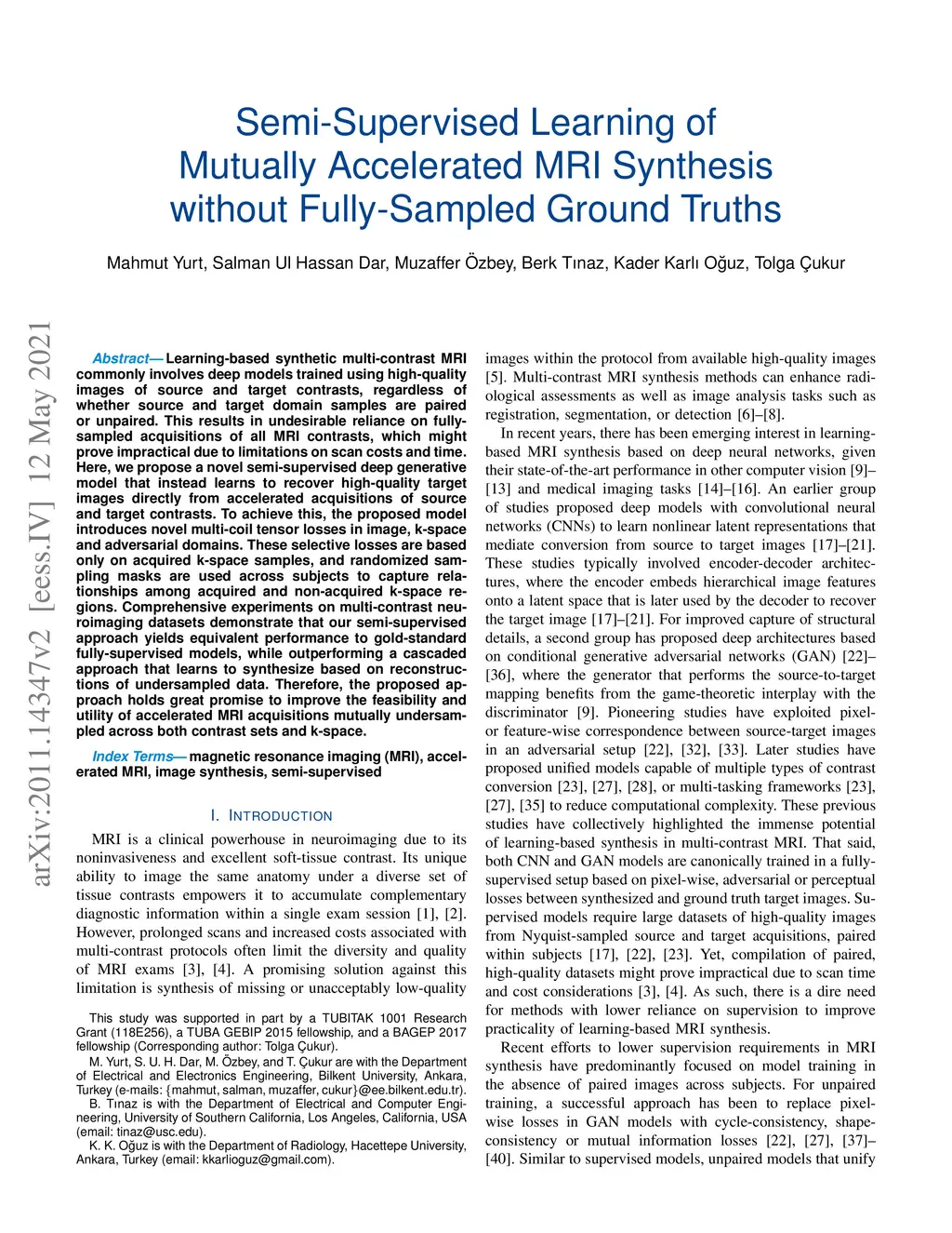 Semi-Supervised Learning of Mutually Accelerated MRI Synthesis without