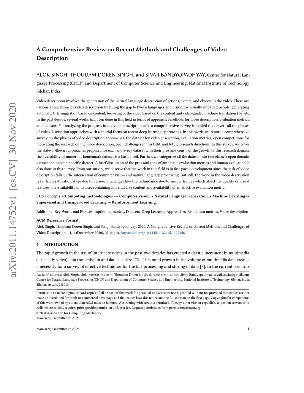 A Comprehensive Review on Recent Methods and Challenges of Video