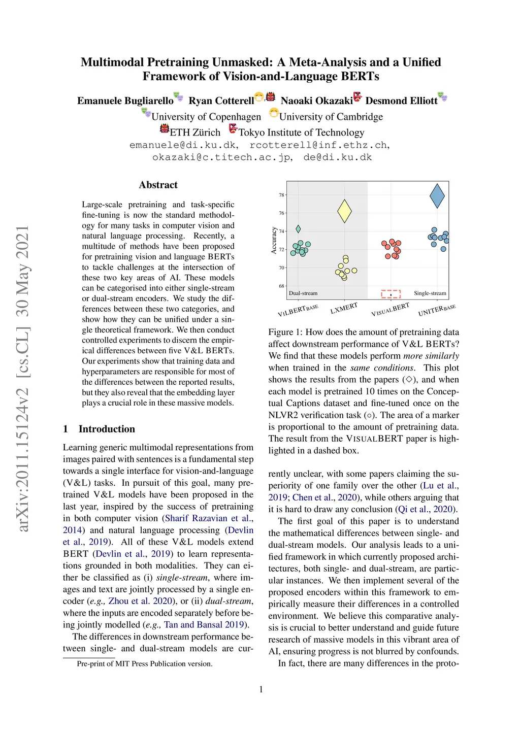 Multimodal Pretraining Unmasked: A Meta-Analysis and a Unified Framework