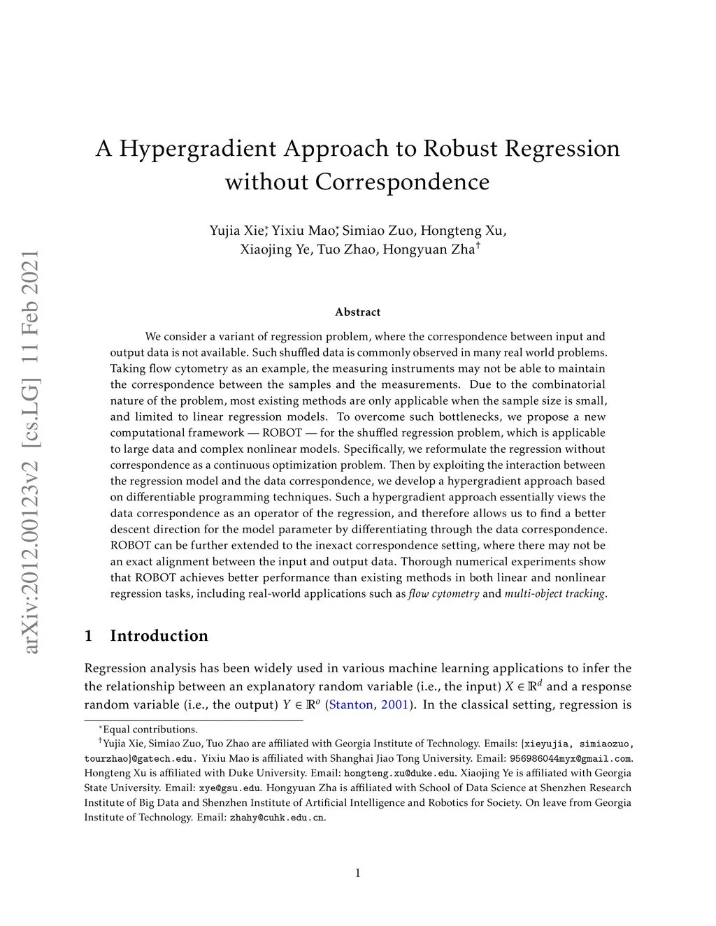 A Hypergradient Approach to Robust Regression without Correspondence
