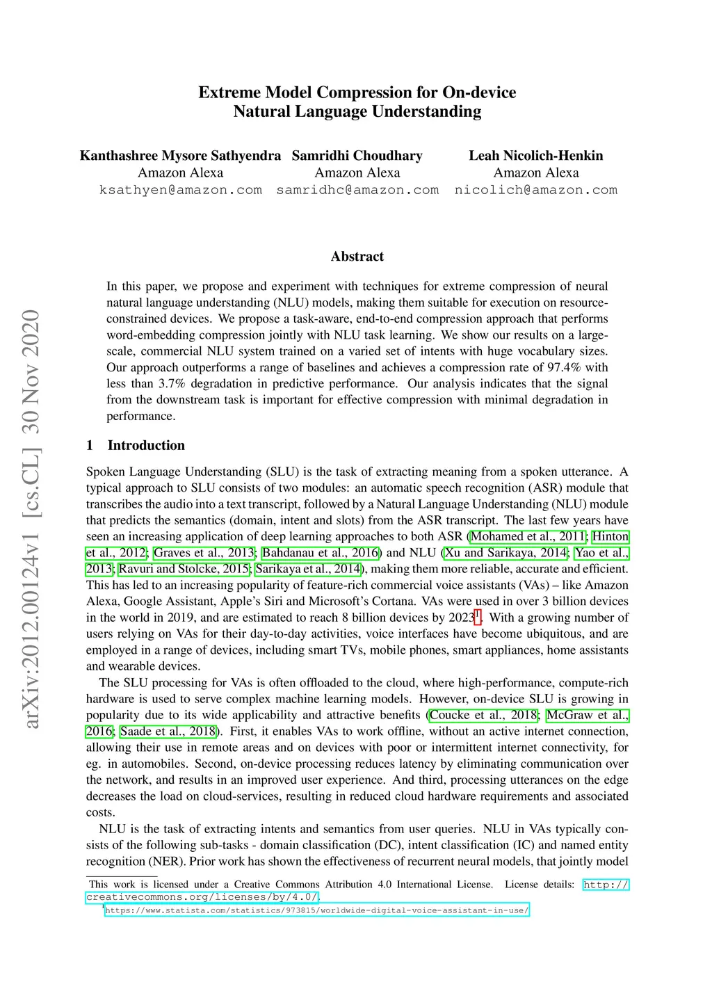 Extreme Model Compression for On-device Natural Language Understanding