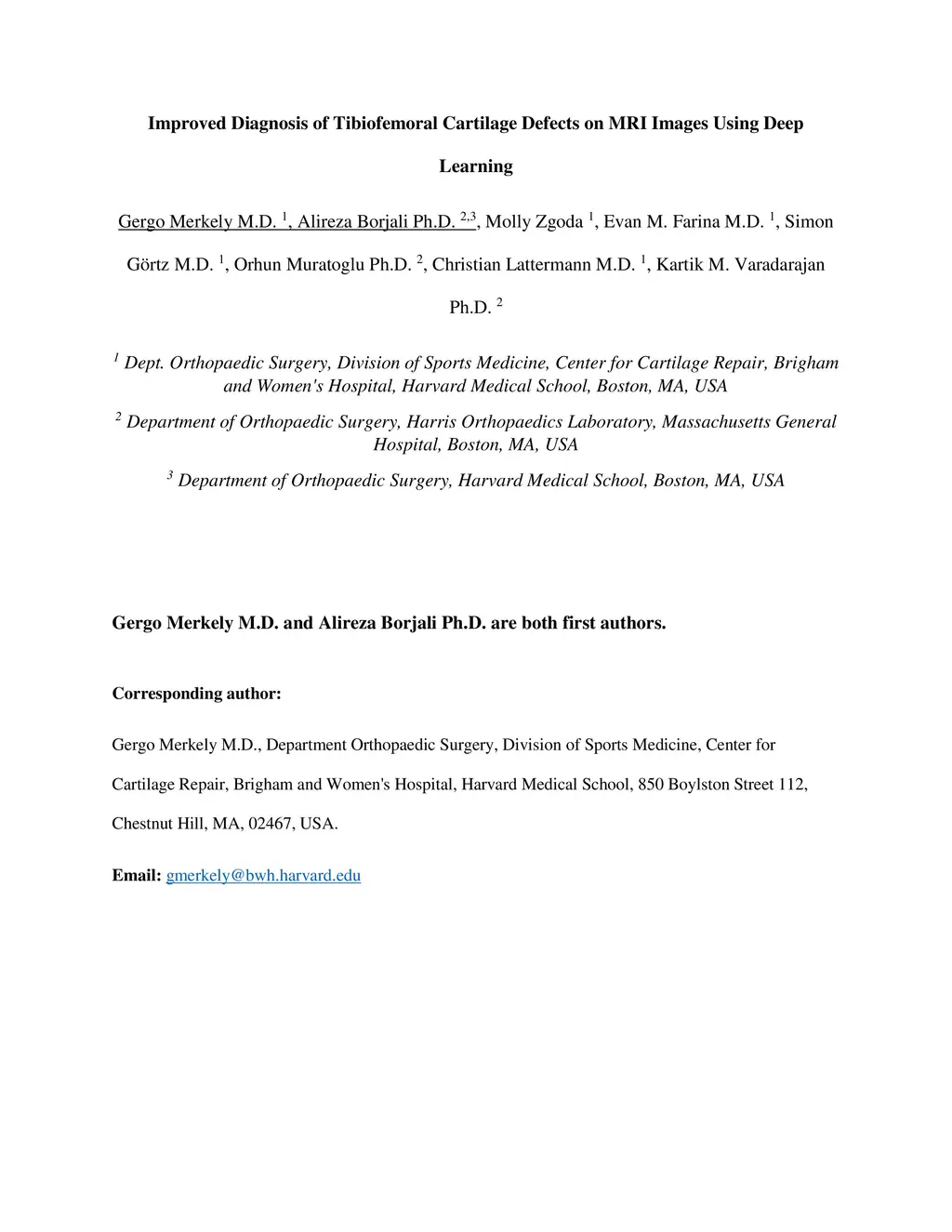 Improved Diagnosis of Tibiofemoral Cartilage Defects on MRI Images Using