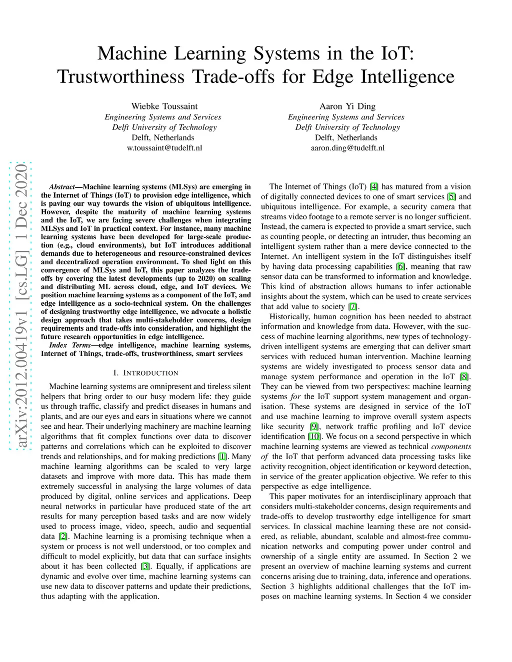 Machine Learning Systems in the IoT: Trustworthiness Trade-offs for Edge