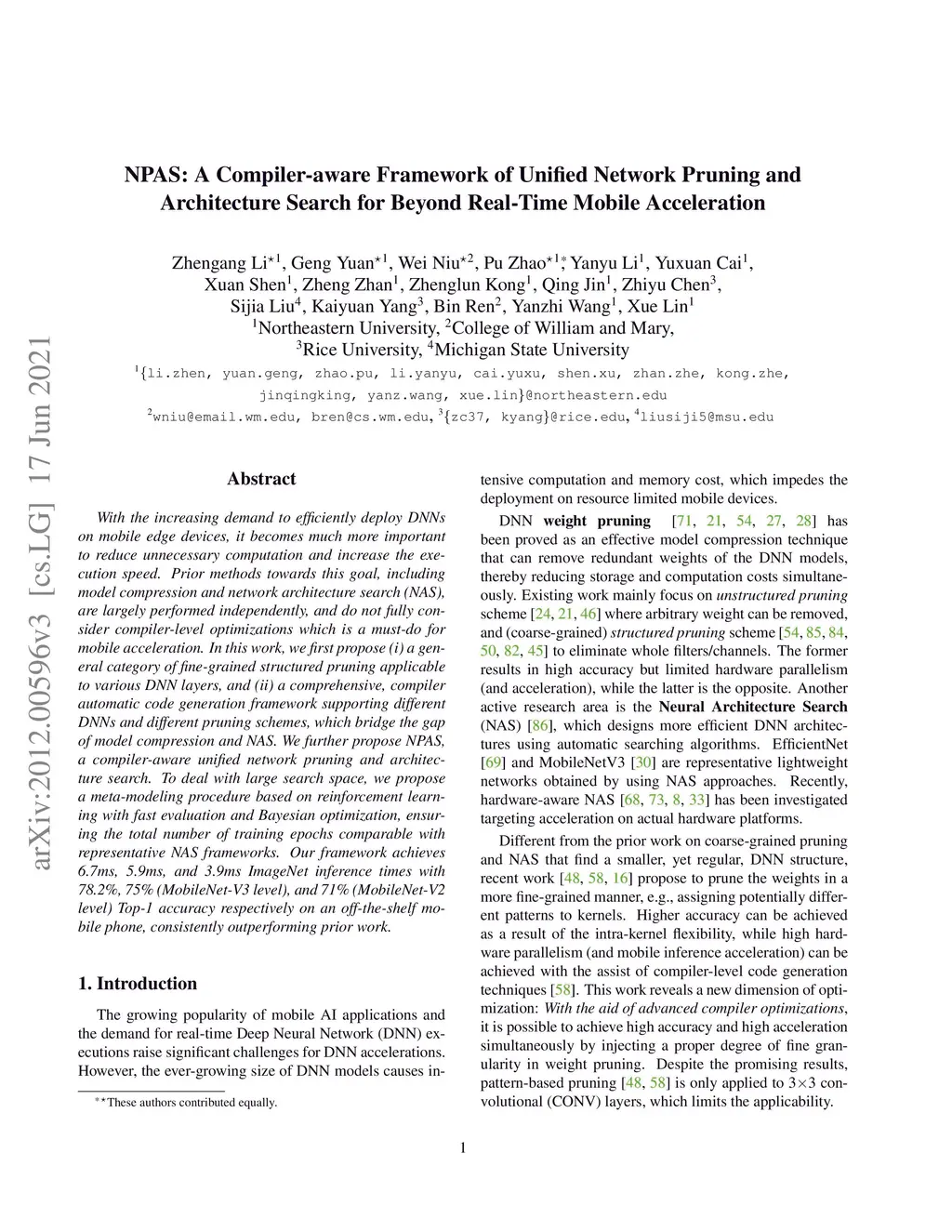 NPAS: A Compiler-aware Framework of Unified Network Pruning and