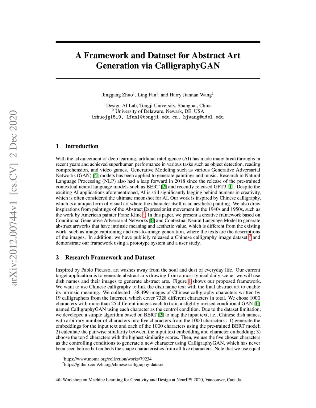 A Framework and Dataset for Abstract Art Generation via CalligraphyGAN
